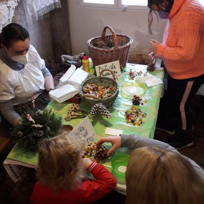 Dílničky pro děti Návrat na přehled zpět na Obrázky Během každého dopoledne probíhaly dílničky pro děti. O víkendech jsme měli možnost vidět zdobení perníčků, předení na kolovrátku a děti si mohly vyrobit pár vánočních ozdob nebo si pohrát v malém herním koutku.